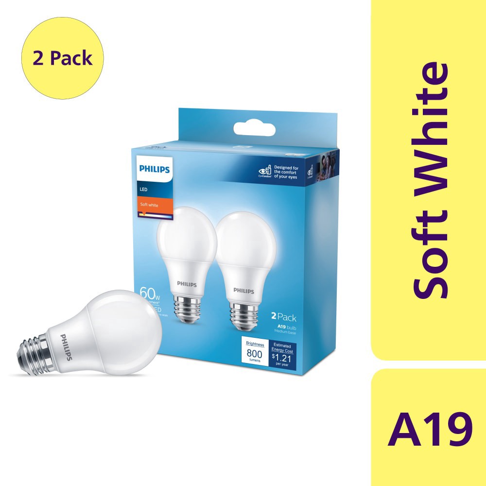 Philips EyeComfort LED bulbs are designed to be comfortable on your eyes, with no visible flicker or glare.Enjoy long-lasting, beautiful light for up to 11,000 hours, or up to 10 years with average us…