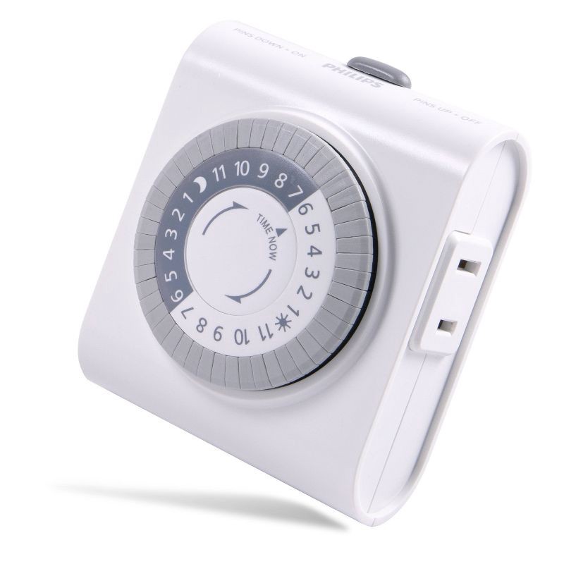 Schedule times two with the Philips 24-Hour Plug-in Mechanical Timer. The easy-to-use timer is perfect for lamps, seasonal lighting, small appliances and more. For increased versatility, it is compati…