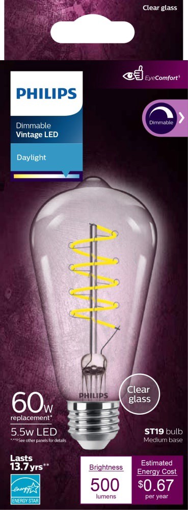 This Vintage LED Clear Spiral Filament bulb is designed to be seen creating a cozy ambience with soft white dimmable tones designed for the comfort of your eye.This Vintage LED Clear Spiral Filament b…