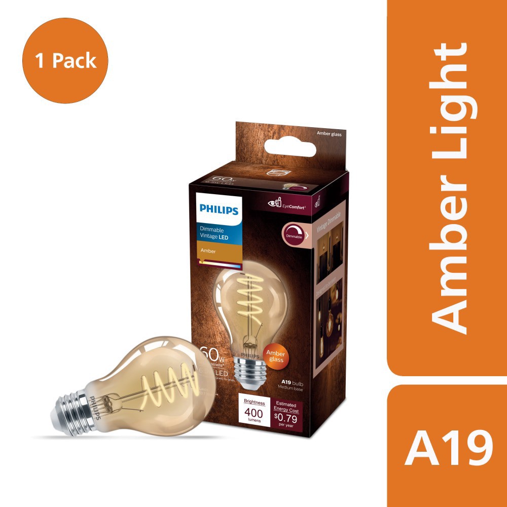 slide 4 of 5, Philips 6.5-Watt (60-Watt) Medium Base A19 Vintage Led Light Bulb, 1 ct