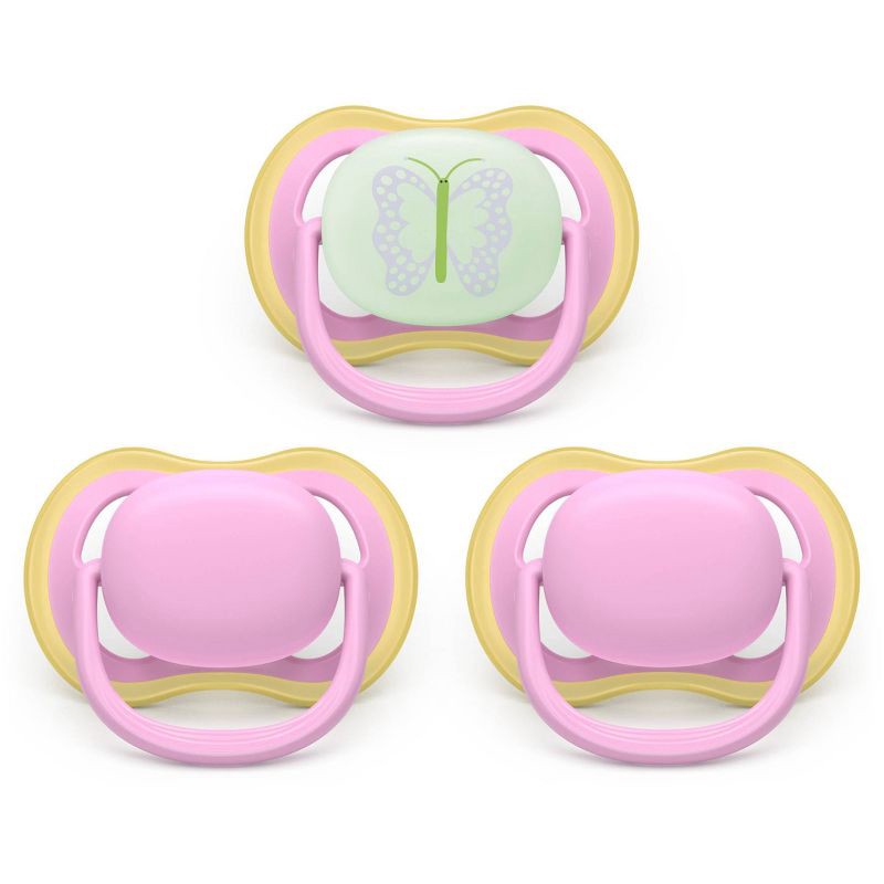 Philips Avent Ultra Air Pacifiers 6-18m - Pink/Butterfly Day+Night - 3pk