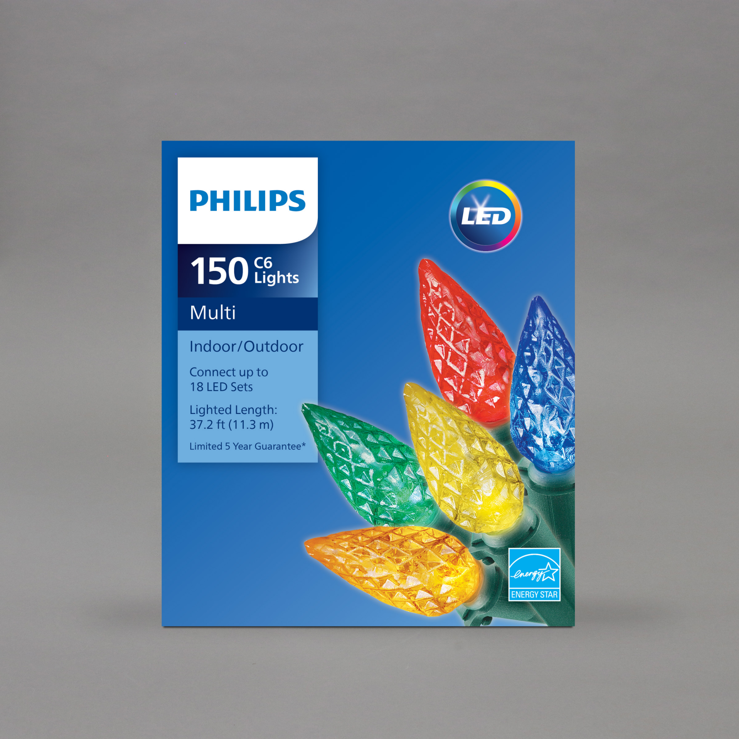 Decorate a variety of areas in and around your home with this Philips LED faceted C6 light set. This set is a single light string with 150 multicolor steady illuminating LED lights. You are able to co…