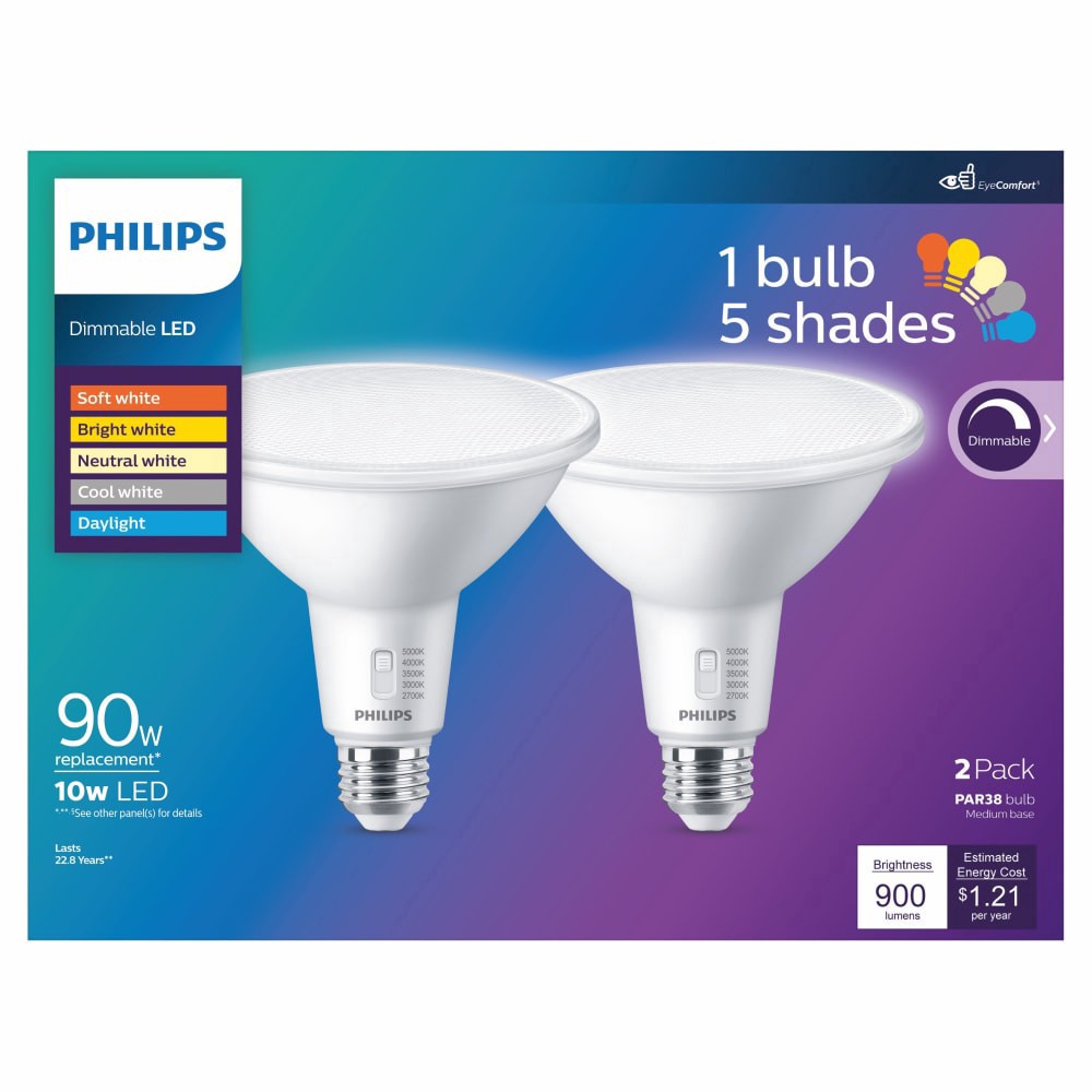 Philips 5-CCT selectable color temperature, 65-watt replacement BR30 LED light bulb allows you to easily switch to your preferred shade of light by choosing from 5 color temperatures ranging from rang…