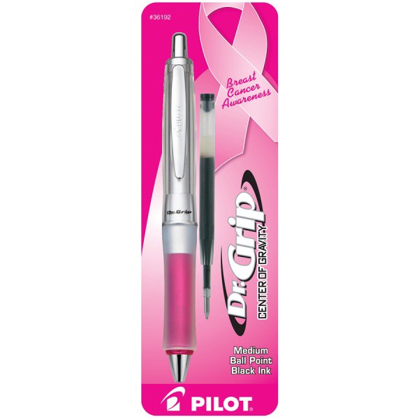 Pilot Dr. Grip Center Of Gravity Breast Cancer Awareness Ballpoint Pen, Medium Point, 1.0 Mm, Pink Ribbon Barrel, Black Ink