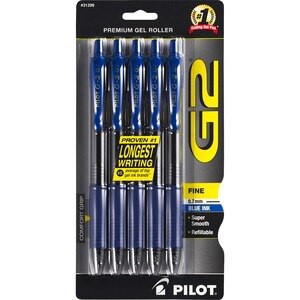 Pilot G2 Fine Point Rolling Ball Gel Pens, Blue Ink, 5 Ct