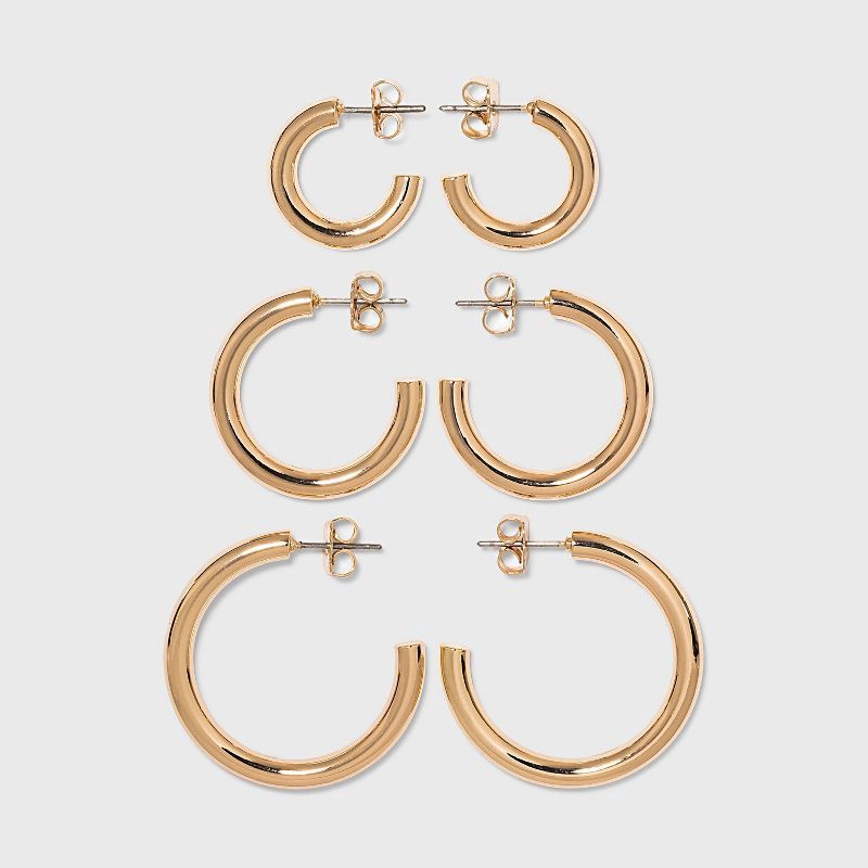 Pipe Hoop Earring Trio Set 3pc - A New Day™ Gold: Nickel-Free Metal, Post Closure, 0.7" Width, Lightweight Design