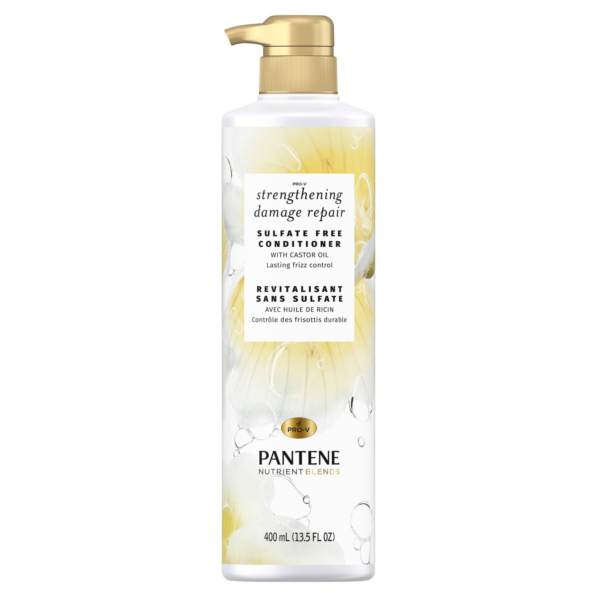 LASTING FRIZZ CONTROL Crafted with no sulfates, parabens, dyes, or mineral oil, Pantene Pro-V NUTRIENT BLENDS Strengthening Damage Repair Sulfate-Free Conditioner with Castor Oil restores resiliency a…