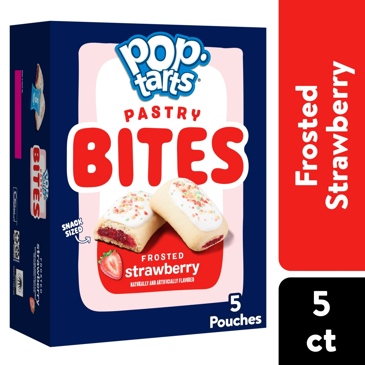 Indulge in a sweet treat with Pop-Tarts Frosted Strawberry soft baked pastry bites. Open a pouch and grab a soft and fluffy pastry, bursting with delicious strawberry flavor. These snack-sized bites a…