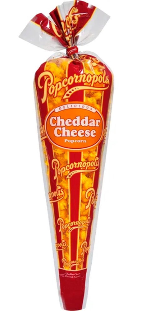 We started perfectly popped popcorn and seasoned it with rich, savory cheddar cheese to create an irresistible flavor in Popcornopolis Cheddar Cheese 2.5 oz cone. Sure, cheddar cheese is a fan favorit…