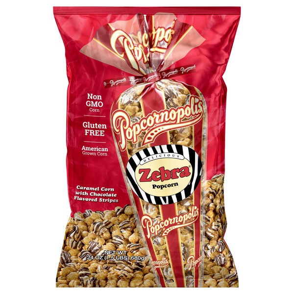 Caramel corn with chocolate flavored stripes. Gluten free. Non GMO corn. American grown corn. Delicious popcorn. You've earned your stripes! and how you're about to be rewarded. Zebra Popcorn is more …