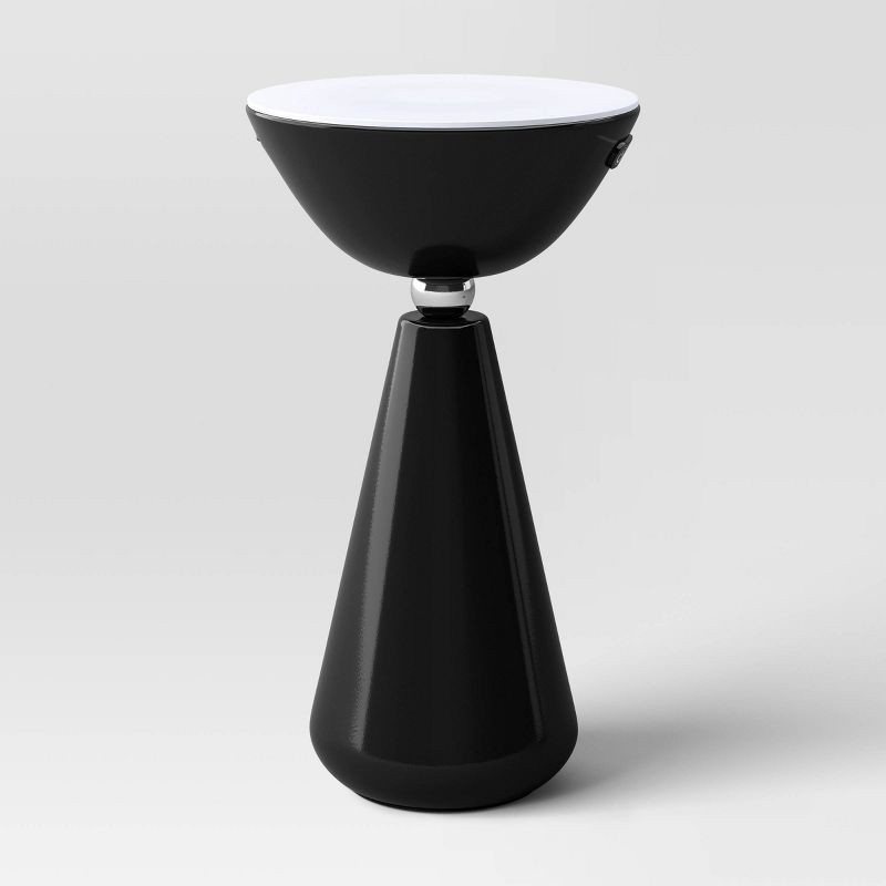Bring a unique and stylish update to your home with the Portable Table Lamp from Room Essentials™. This black table lamp features a slanting side base with a round bowl-like top for a standout look. M…