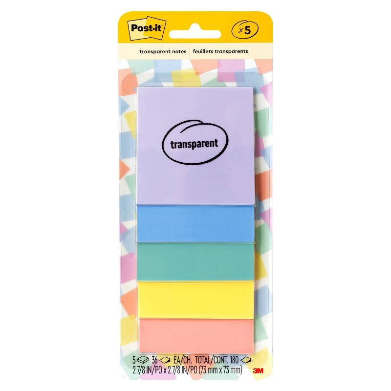 - GET ORGANIZED: Each pack includes 5 pads of 2.8 in. x 2.8 in. pastel pink, yellow, green, blue and purple transparent notes, with 36 sheets per pad, great for your office, study area, or school classroom