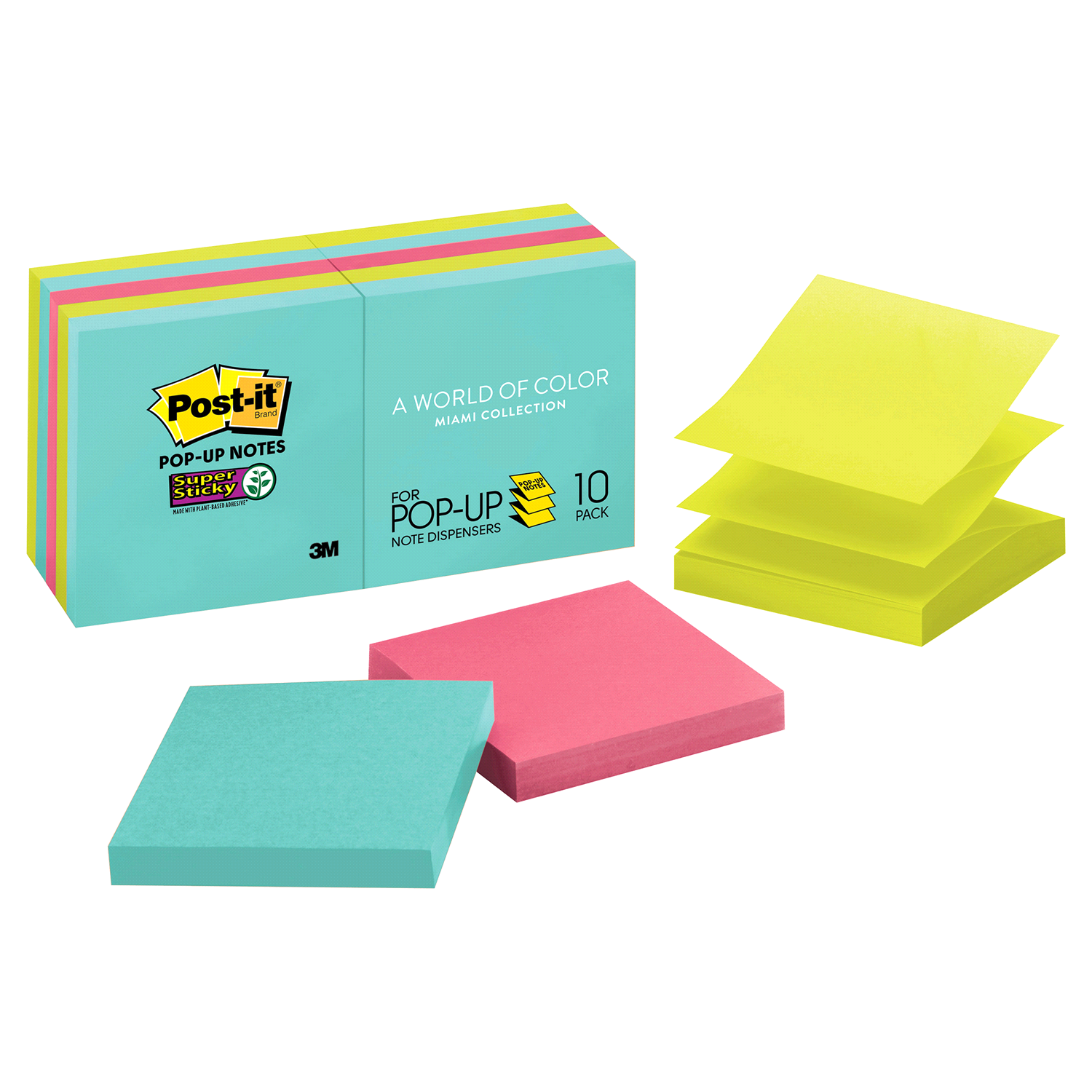 Post-it Super Sticky Pop-up Notes 3 in x 3 in, Miami collection, 10 Pads/Pack, 90 Sheets/Pad