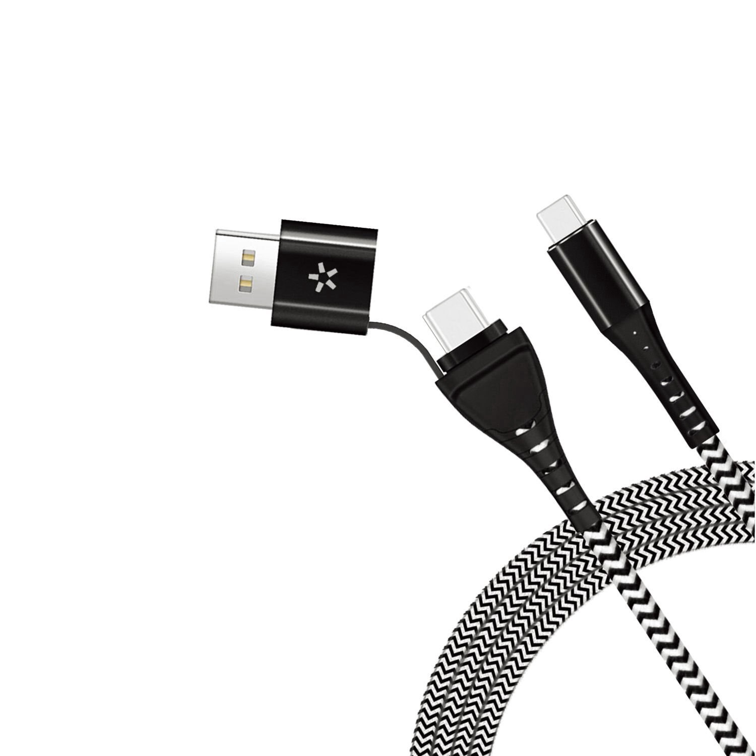 The 2-in-1 cable comes with a USB-A adapter that converts one of the USB-C connectors into a USB-A connector. This versatile cable supports both USB-C and USB-A port devices. Its braided nylon shieldi…