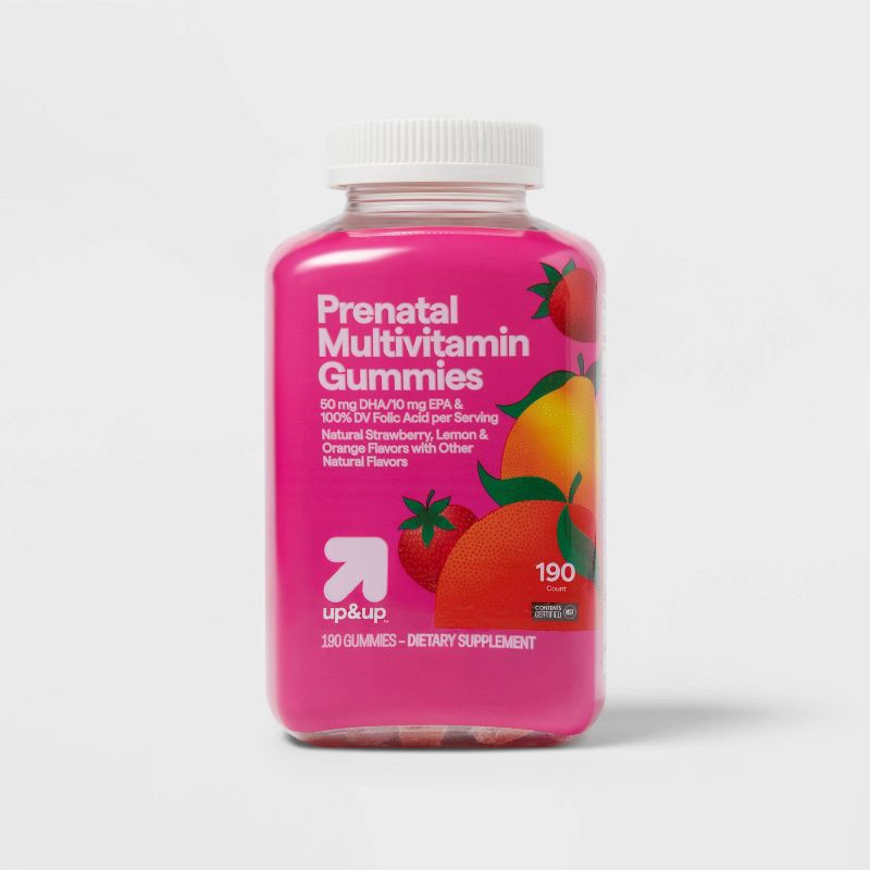 Support your health during the early stages of your pregnancy with these 190-Count Prenatal Gummies from up&up™. This bottle includes 190 mixed strawberry, lemon and orange-flavored multivitamin gummi…