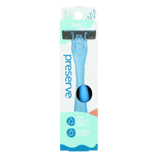This BPA free Triple Razor comes with two replacement blades and has an ergonomic handle that is 100% recycled #5 plastic and completely recyclable after use. Titanium-covered blades feature a Vitamin…