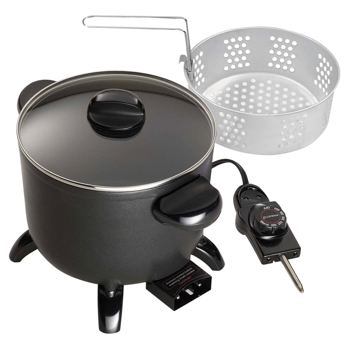 Kitchen Kettle multi-cooker/steamer 120 volts AC, 1200 watts Stock No. 06006 The Kitchen Kettle multi-cooker/steamer with tempered glass cover steams, stews, roasts, boils, deep fries and more. Deep f…