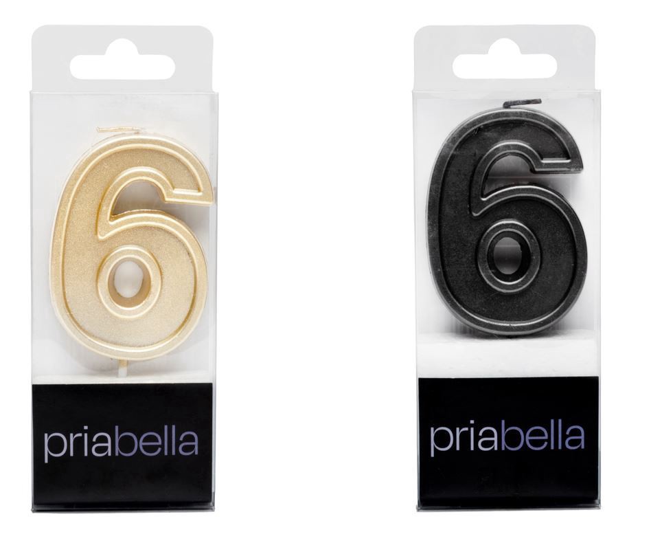 METALLIC BIRTHDAY CANDLE GOLD/BLACK 6 ASSORTED