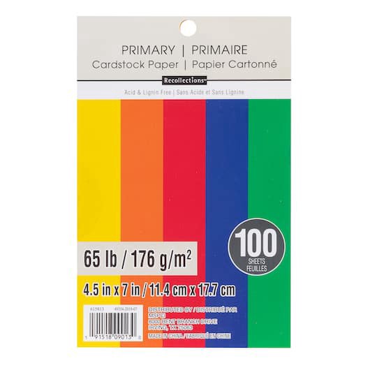 Buy the Primary 4.5" x 7" Cardstock Paper by Recollections, 100 Sheets at Michaels. Take your papercraft skills to a new level with these colored paper sheets. Includes assorted primary colors. 4.5" x…