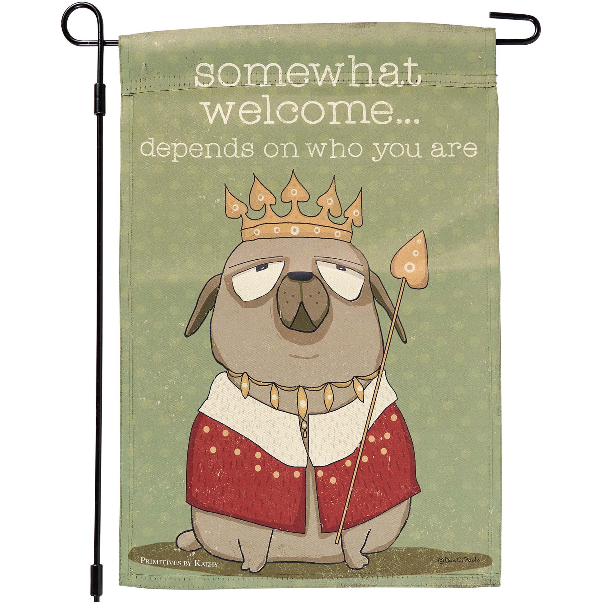 Make a clever statement that fits seamlessly amongst your foliage with this funny double-sided garden flag. This decorative, weather-resistant garden flag features a rustic design of a dog dressed likā¦