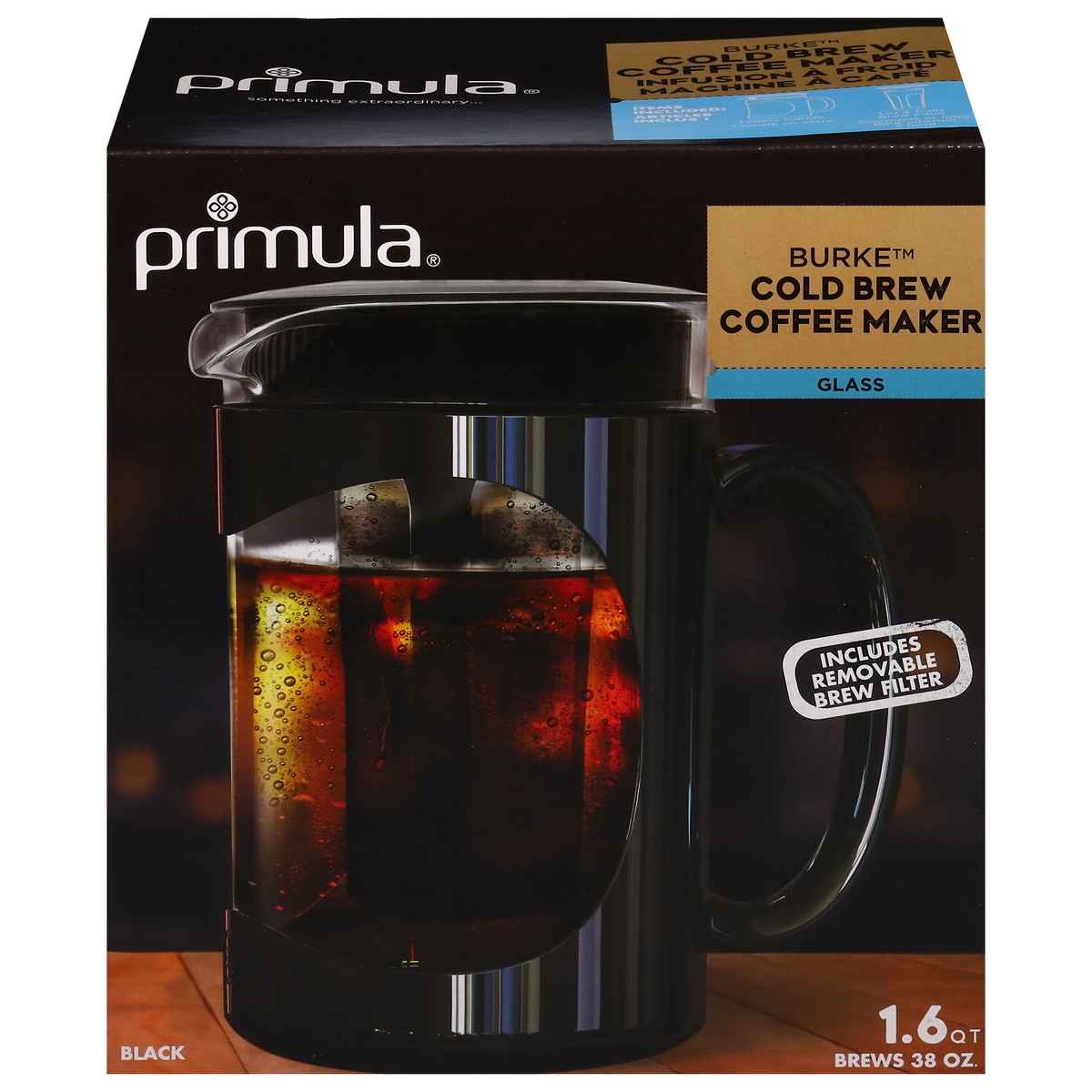 Includes removable brew filter. Brews 38 oz. Items Included: 1 glass carafe, lid & cold brew filter. Something extraordinary. Removable brew filter. Silicone gasket top for drip. Removable bottom for …
