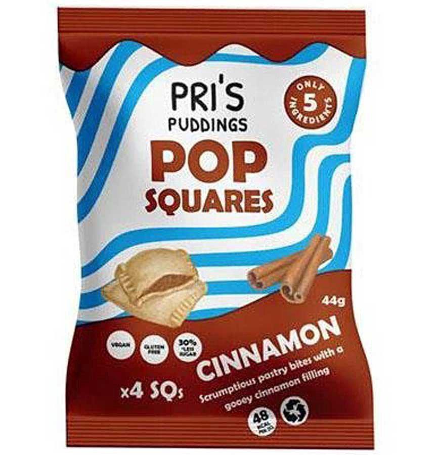 Pri's Puddings' Cinnamon Pop Squares are healthy, tasty, and great for the planet! Enjoy four little pastry bites in each pack filled with a thick cinnamon paste that are gluten free and contains 30% …