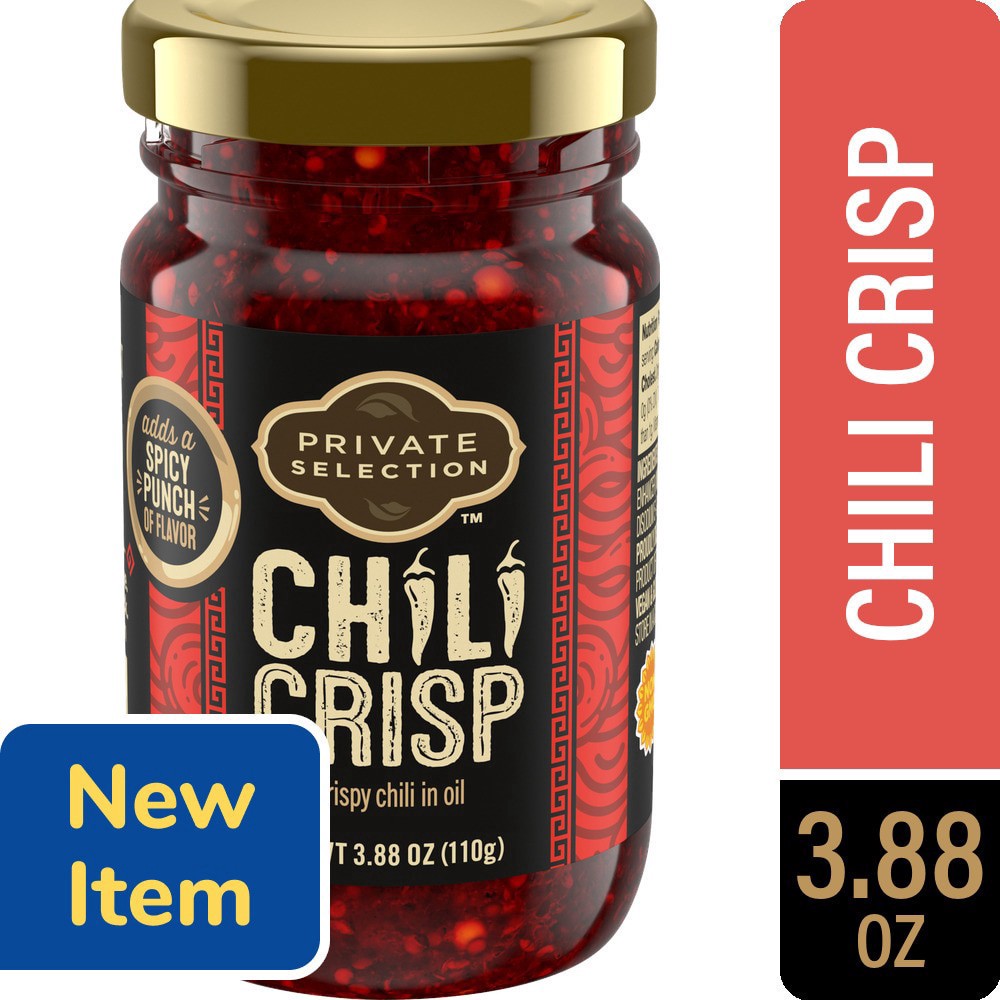Private Selection® Mild Chili Crisp Condiment unlocks a fiery fusion. With crispy chilis in oil, this non-GMO sauce adds a spicy punch of flavor to your meals! It's a great addition to soups, rice, no…