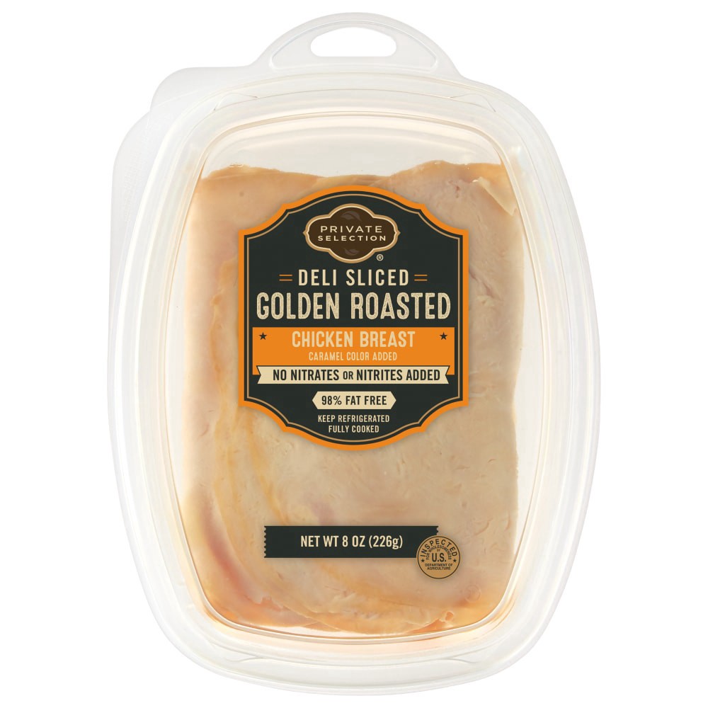 Private Selection® Golden Roasted Deli Chicken Breast Sliced takes your at-home eating experience up a notch. Expertly sliced, this deli chicken serves up tantalizing taste in every bite. It's 98% fat…