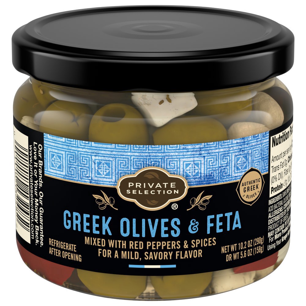 Private Selection® Greek Olives & Feta masterfully combines ripe, pitted Kalamata and green olives with creamy feta cheese for explosive flavor. Mixed with garlic, red peppers, and spices, to heighten…