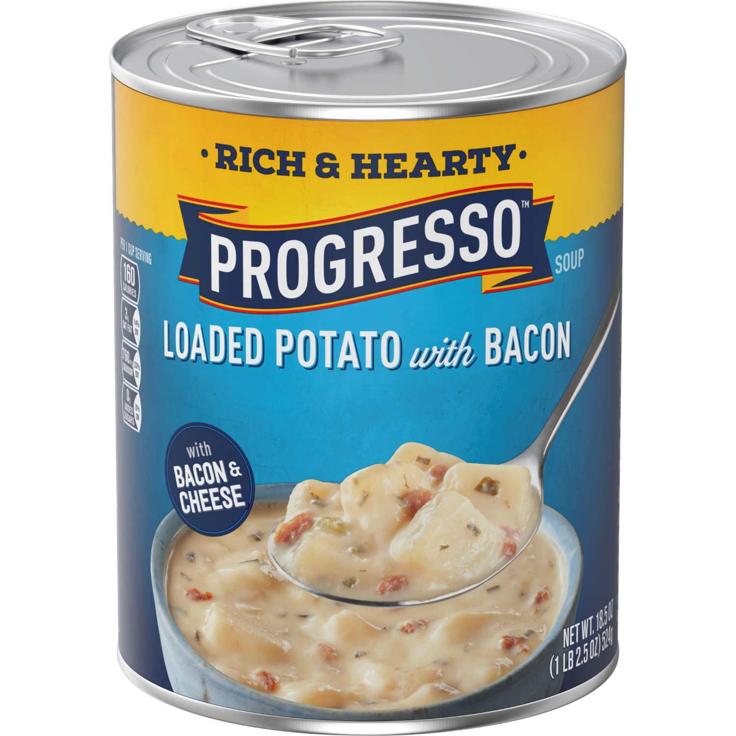 Load up your spoon with Progresso Rich & Hearty Loaded Potato with Bacon Soup and enjoy every delicious, wholesome bite. Made with no artificial flavors, artificial colors, trans fat or added MSG, you…