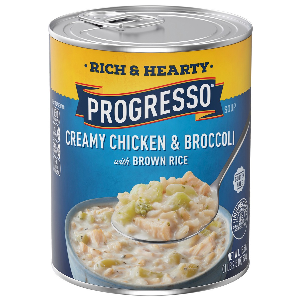 Expand the taste variety of your everyday lunch or dinner by trying Progresso Rich & Hearty Creamy Chicken & Broccoli with Brown Rice. Each decadent bite will be filled with white meat chicken, a rich…