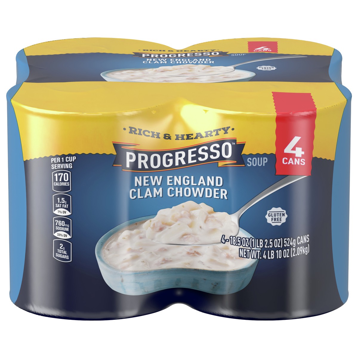 Every bowl of Progresso Traditional New England Clam Chowder is a creamy delight with soft potato chunks and plenty of delicious clams. This gluten-free soup is made with no artificial flavors and no …