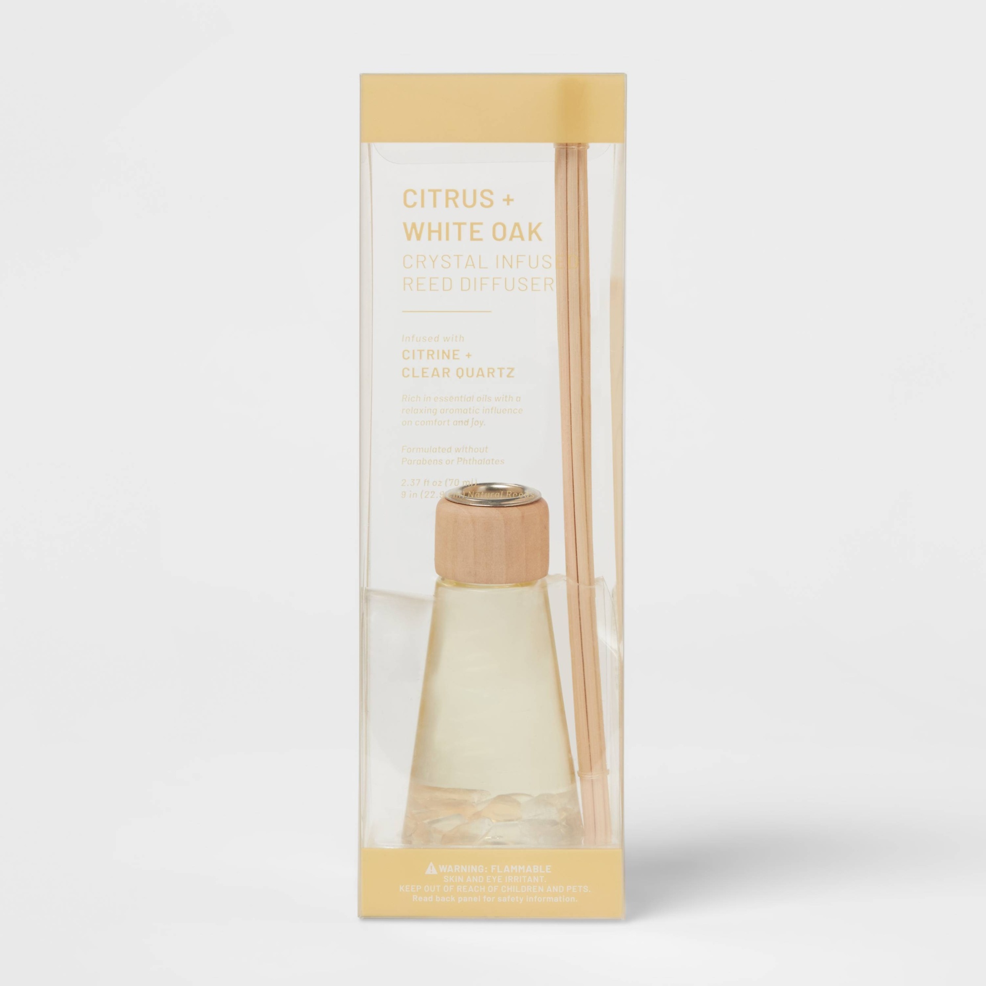 Enhance the mood of any room of your house with this 2.7-Ounce Citrus and White Oak Wellness Crystal Reed Diffuser from Project 62. With a wooden cap clear glass diffuser, reeds and essential oil incl…