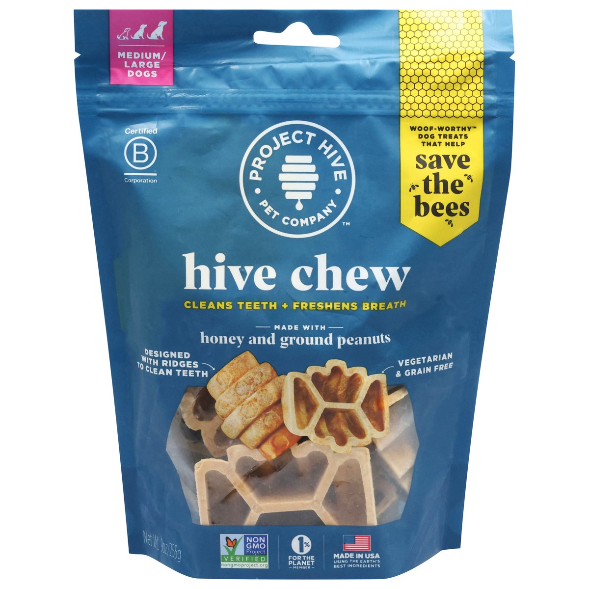 Project Hive Chew Treats For Large Dogs are delectably crunchy with an irresistible peanut taste that dogs love. Made in the USA with wholesome ingredients, our treats are NonGMO Project Verified, veg…