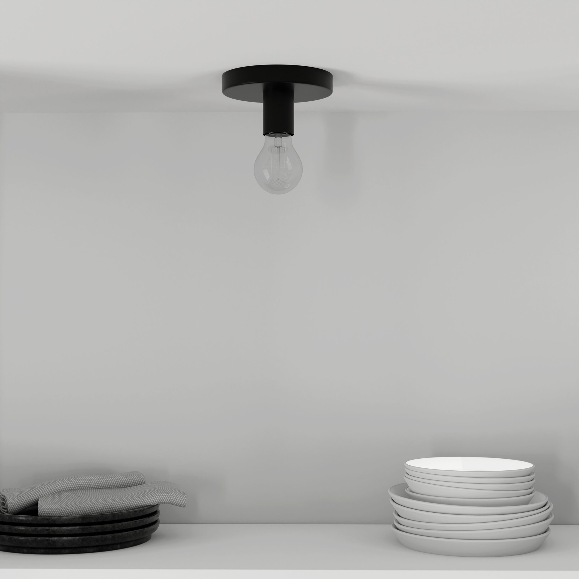 This matte black flush mount provides a touch of sleek transitional style to your home and is perfect for adding a touch of light to smaller spaces. Requires one medium (E-26) base light bulb, maximum…