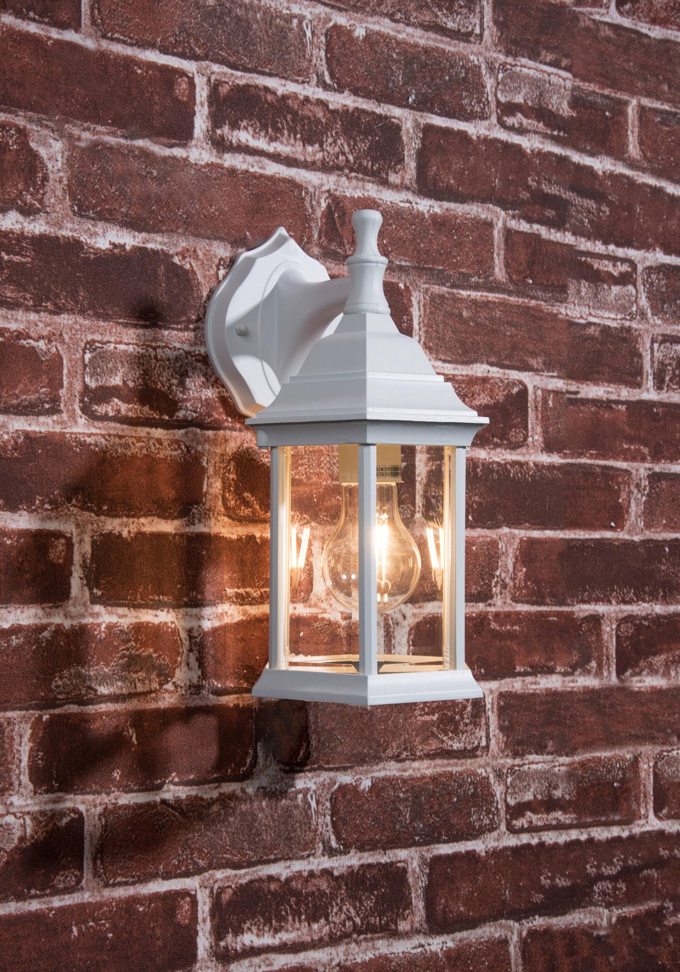 Die-cast aluminum housing with white finish. Clear glass. Open-bottom design allows for quick, hassle-free bulb changes. Recommended use of one 60 watt max medium base light bulb (or energy efficient …