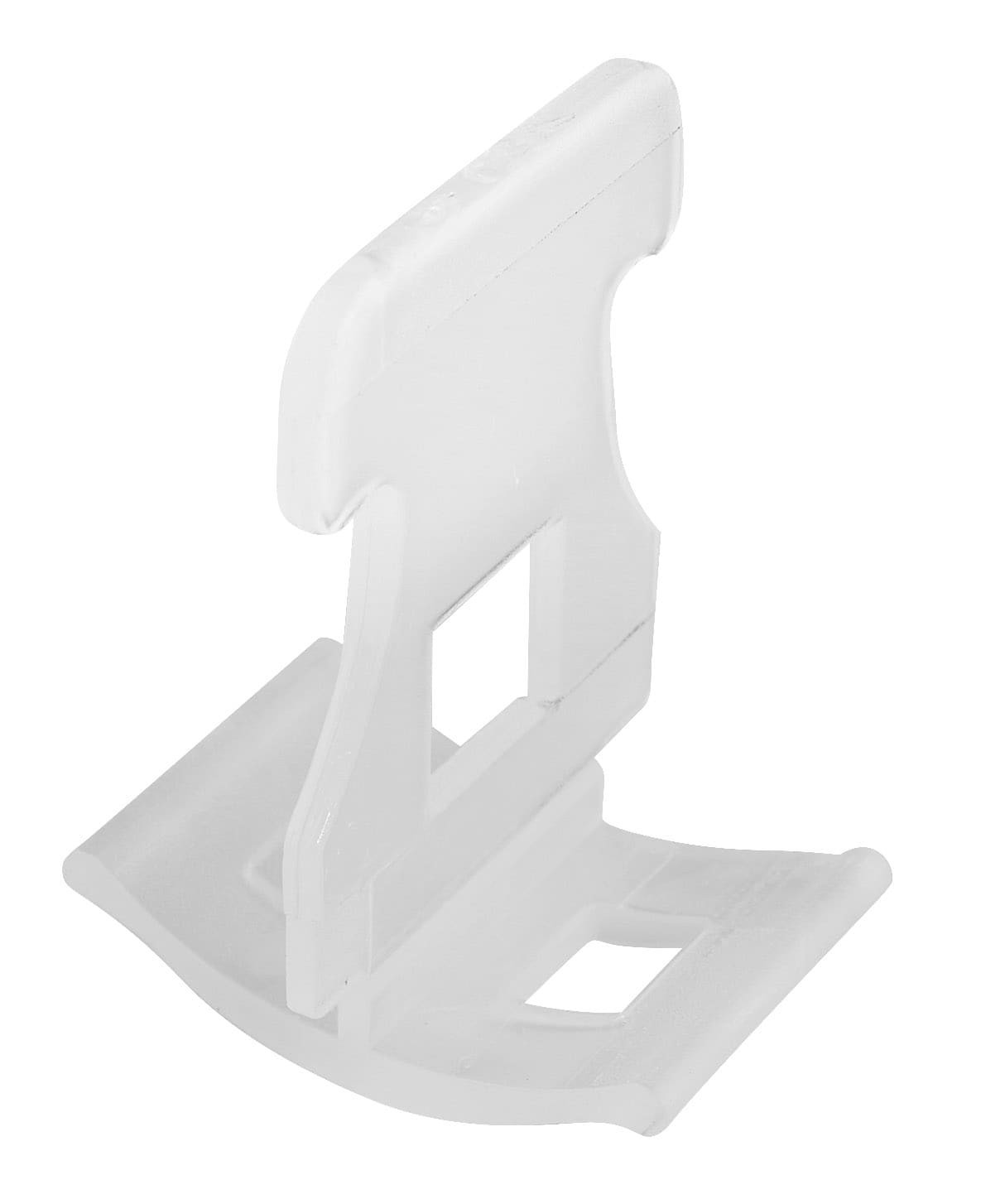 Create perfectly leveled surfaces for floor tiles. For tiles between 3/16-in and 7/16-in thick. Provides narrow, level 1/16-in grout line. Patented designed break-off point on clips for swift removal.