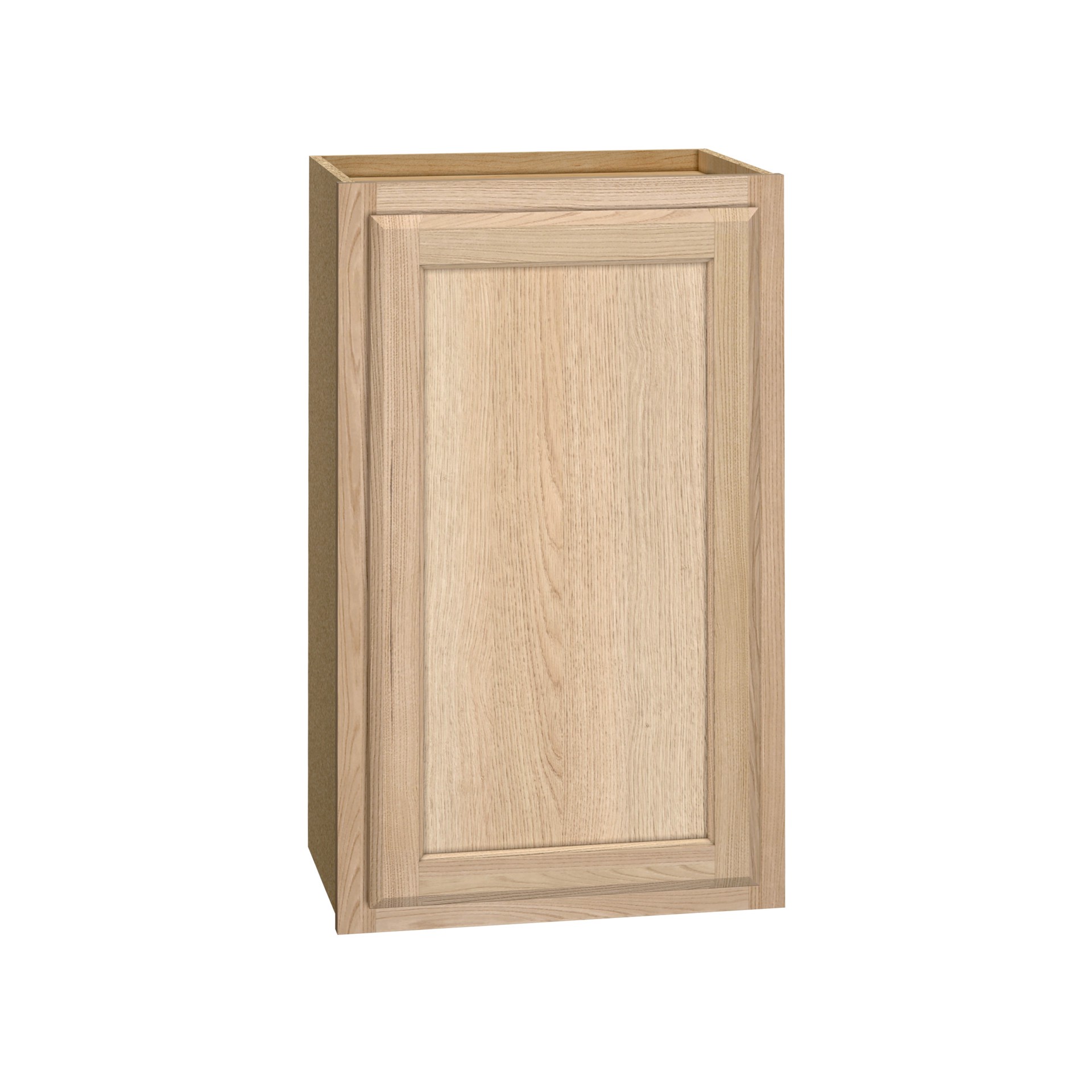 Project Source Oak Brook 18-in W x 30-in H x 12-in D Natural Unfinished Oak Wall Fully Assembled Cabinet Flat Panel Square