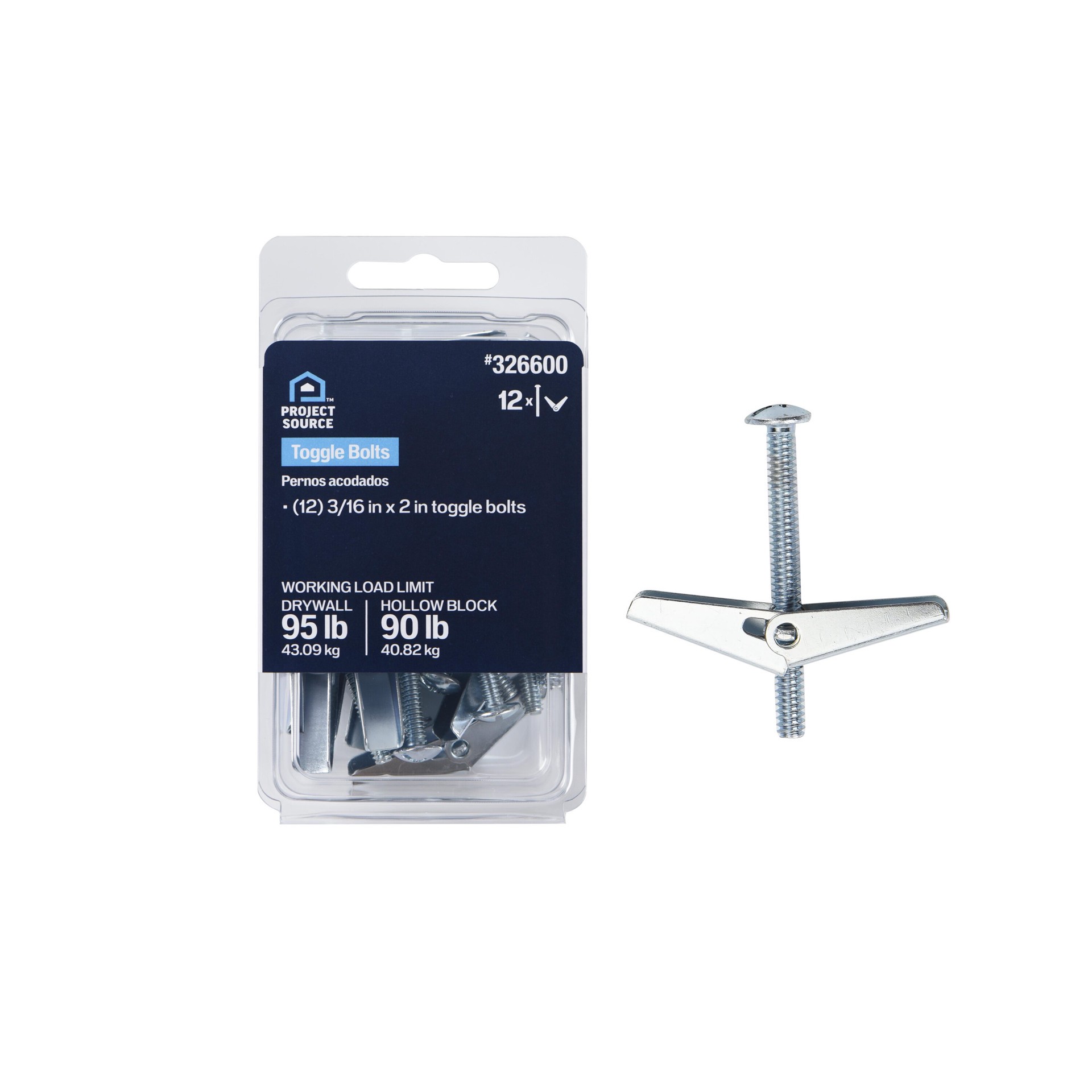 Project Source 95-lb 3/16-in x 2-in Toggle Bolt Anchors with Screws Included 12 -Pack