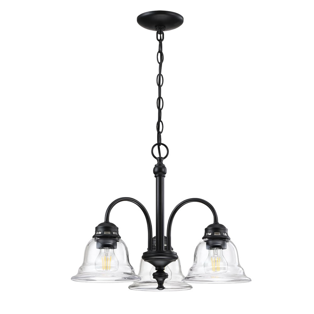 Project Source Fallsbrook 3 -Light Matte Black Traditional For Use in Bedrooms, Dining Rooms, Foyers, Kitchens, Living Rooms Chandelier
