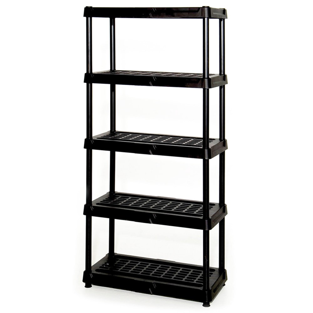 Project Source 5 -Tier Heavy Duty Black Plastic Utility shelving unit with Ventilated Shelves ( 36-in W x 18.0-in D x 72.0-in H )