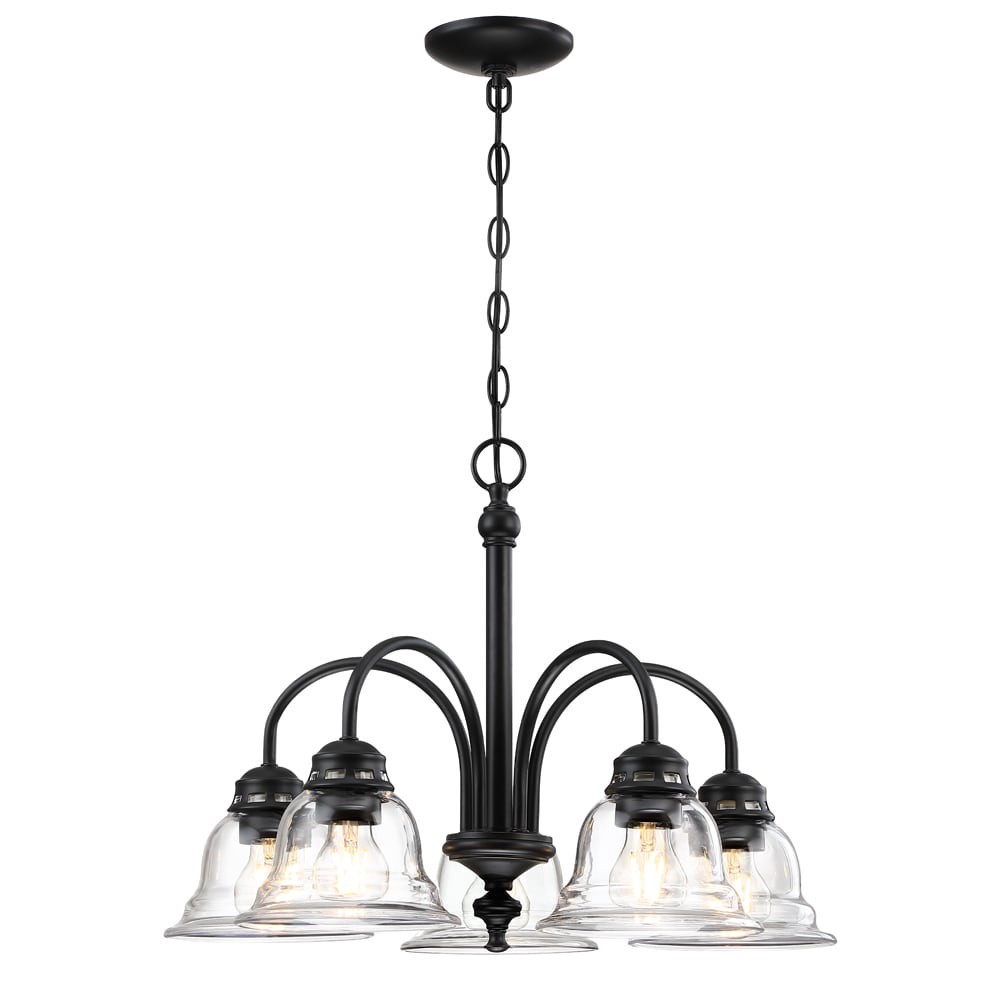 Project Source Fallsbrook 5 -Light Matte Black Traditional For Use in Bedrooms, Dining Rooms, Foyers, Kitchens, Living Rooms Chandelier