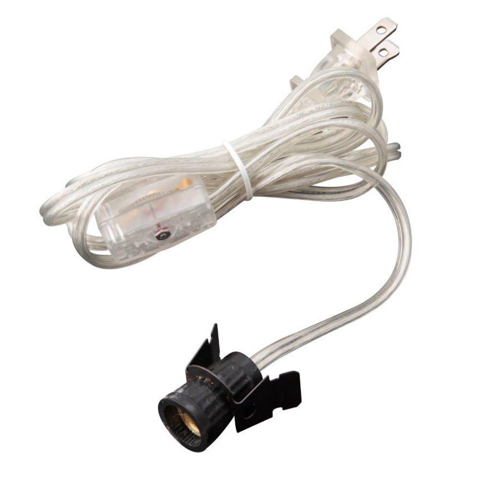 This Project Source lamp cord includes on/off switch. Uses a candelabra base light bulb. 5 foot cord length. Easy installation.