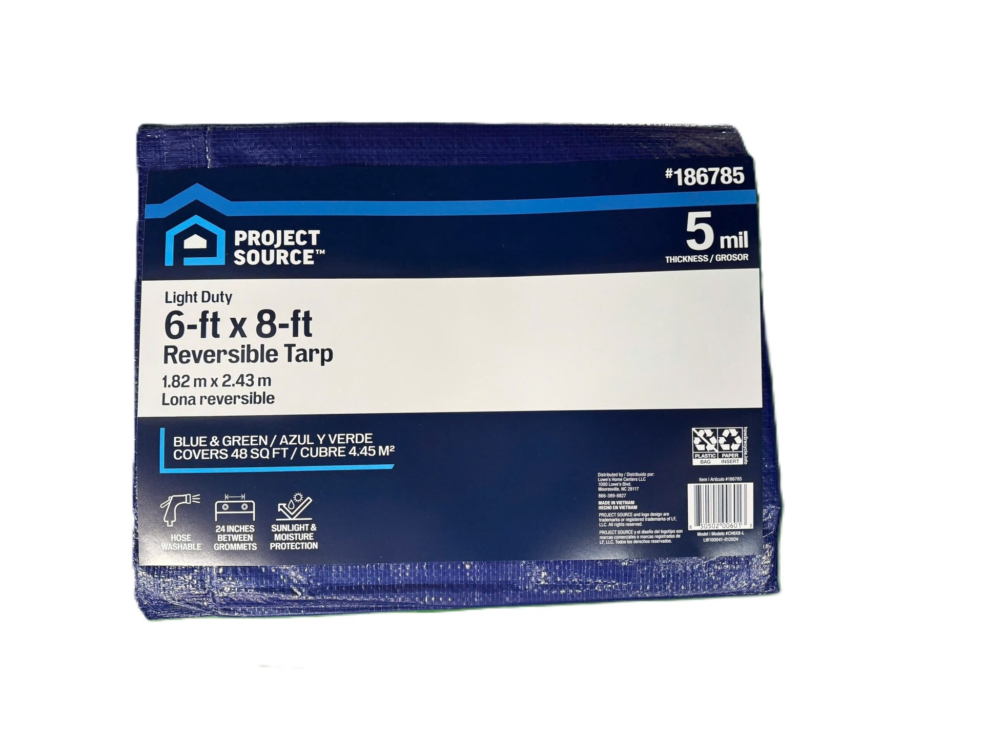 Project Source 8-ft x 6-ft Blue Waterproof Standard Polyethylene 5-mil Tarp