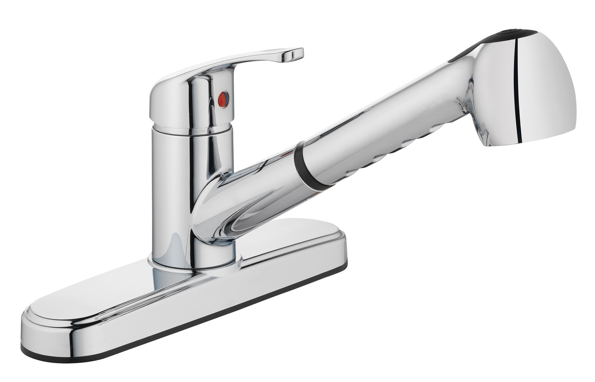 Project Source Chrome Single Handle Deck-mount Pull-out Kitchen Faucet with Sprayer (Includes Deck Plate)