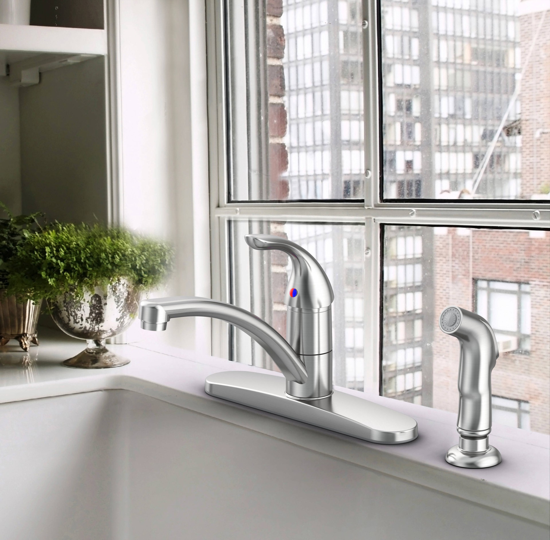 Project Source EVERFIELD Stainless Steel PVD Single Handle Deck-mount Kitchen Faucet (Includes Deck Plate) (Includes Side Sprayer)