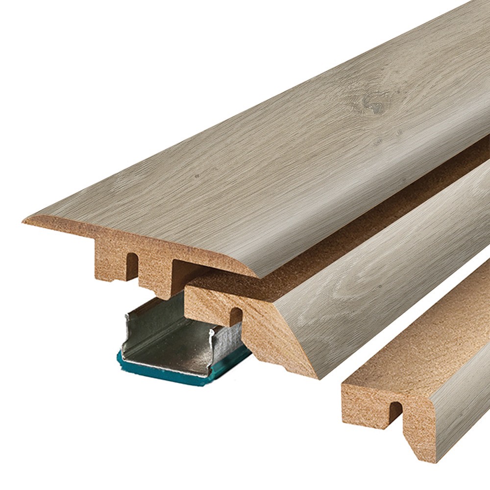 Provides one solution for four different moulding needs - hard surface reducer, T-moulding, carpet transition and end moulding. Falls Trail is a medium gray wood look moulding which will coordinate wi…