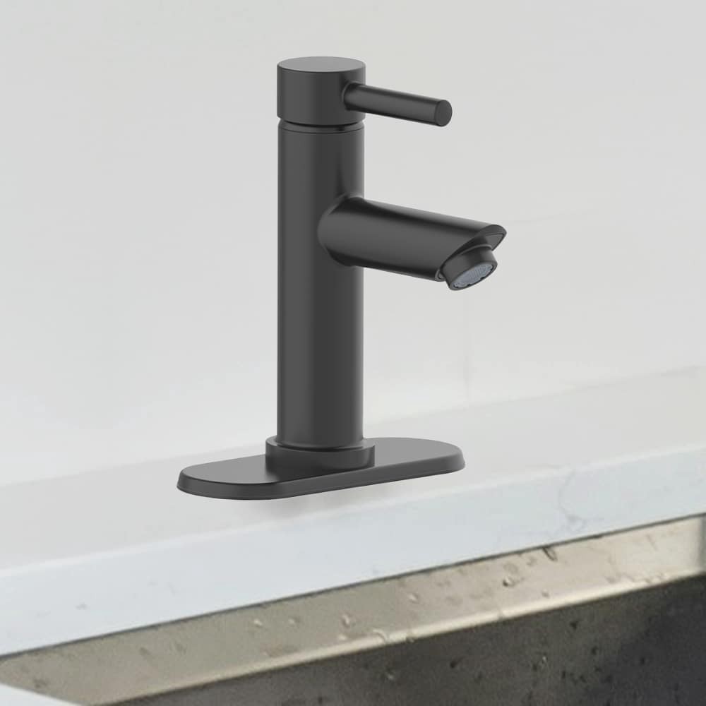 Project Source Idlewood Matte Black Single hole 1-handle WaterSense Mid-arc Residential Handle Bathroom Sink Faucet with Drain with Deck Plate