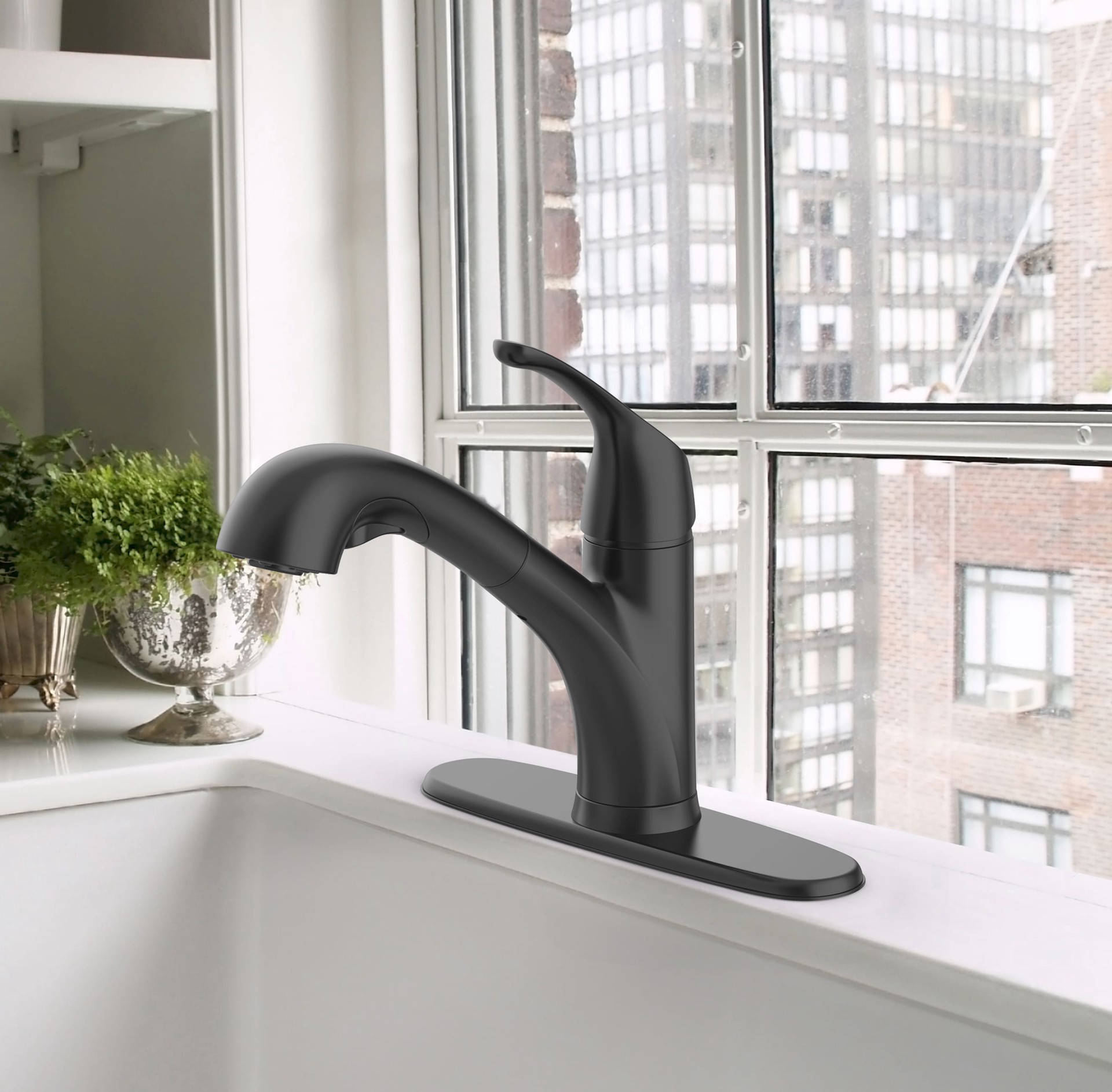 Project Source EVERFIELD Matte Black Single Handle Deck-mount Pull-out Kitchen Faucet with Sprayer (Includes Deck Plate)