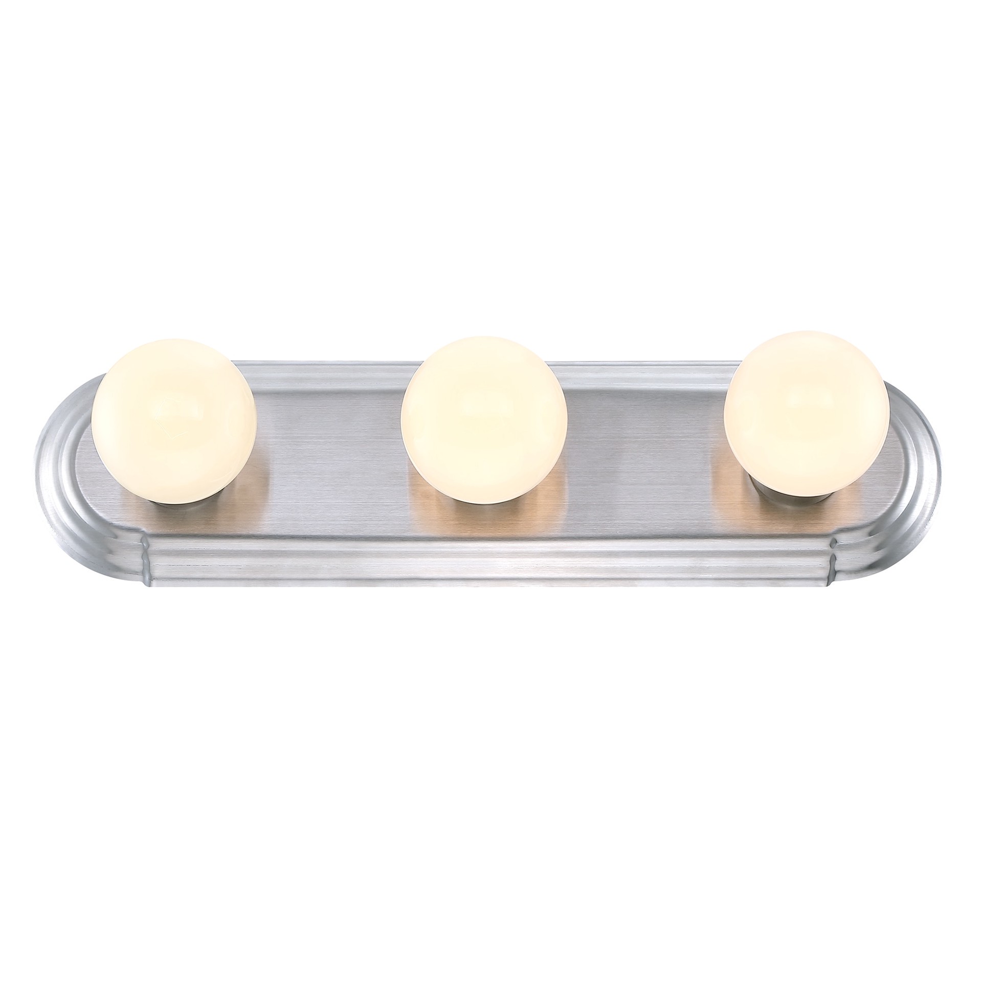 3 light vanity bar. Brushed nickel finish without shade. Three 60-watt medium base bulb required (not included).